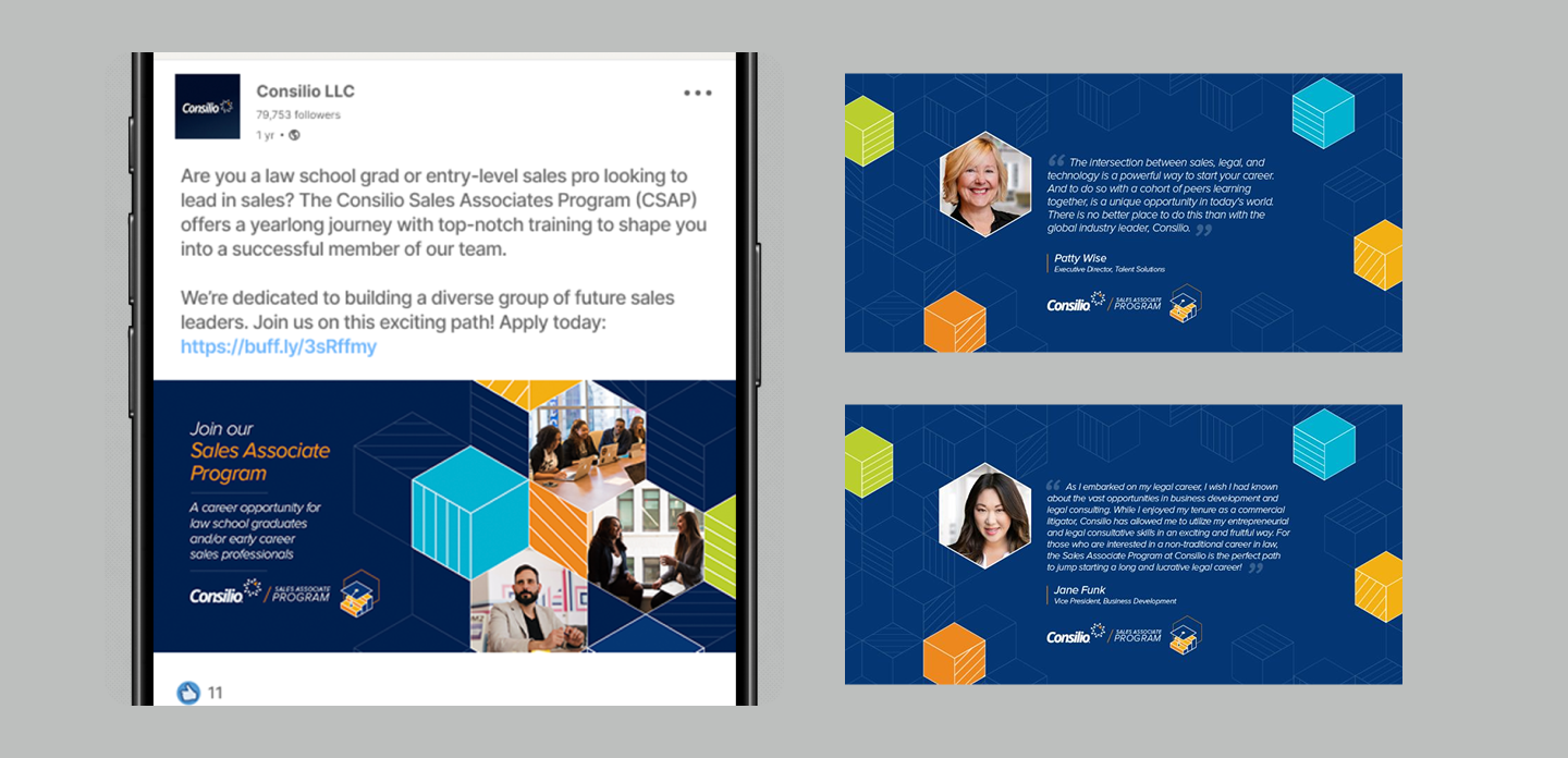 Identity and branding for Consilio’s early-in-career training and development program; focusing specifically on law school graduates and early career professionals.