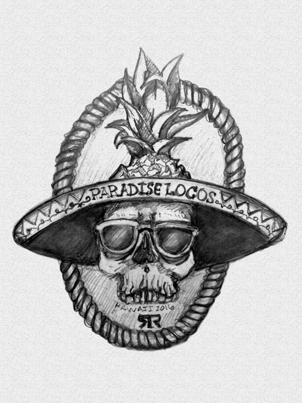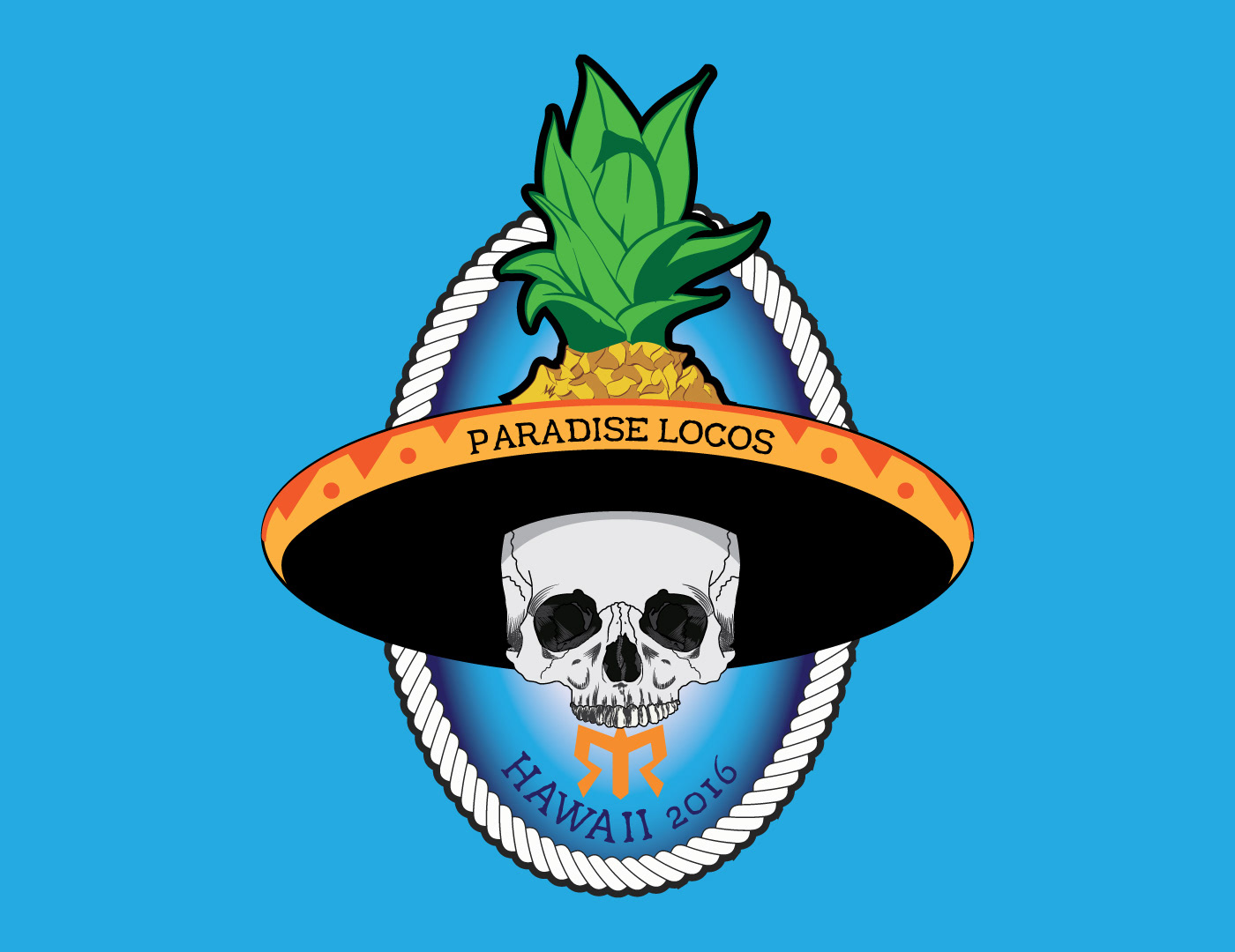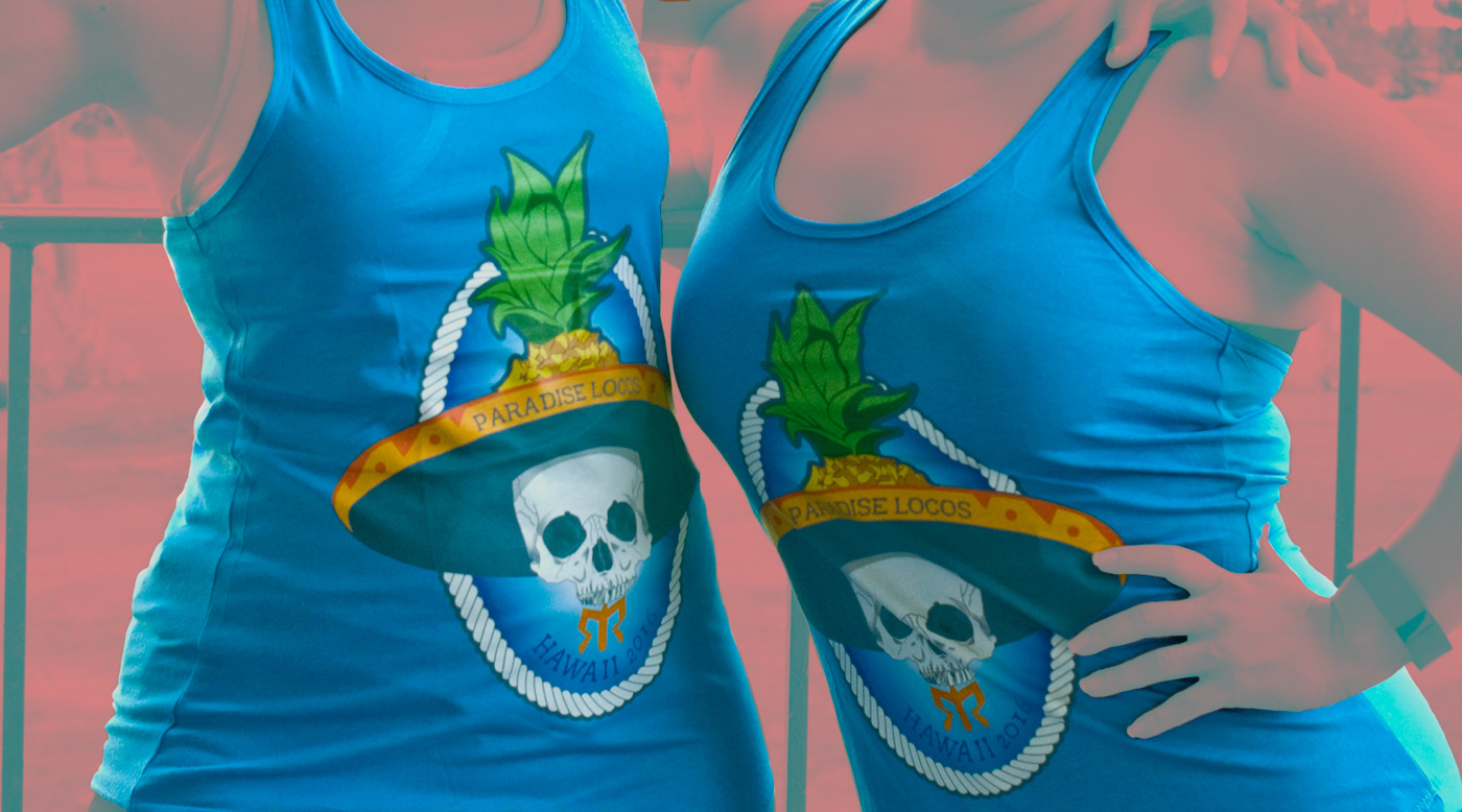 Illustration for a team logo and t-shirt design for the Paradise Locos. The logo was created for our team's Hawaii Ragnar Relay race. Components of the illustration represented our destination (pineapple & nautical rope) and our tie to the Hispanic culture (Sombrero). The skull embodied our athlete, a way of showing the human element for team of male and female runners.
